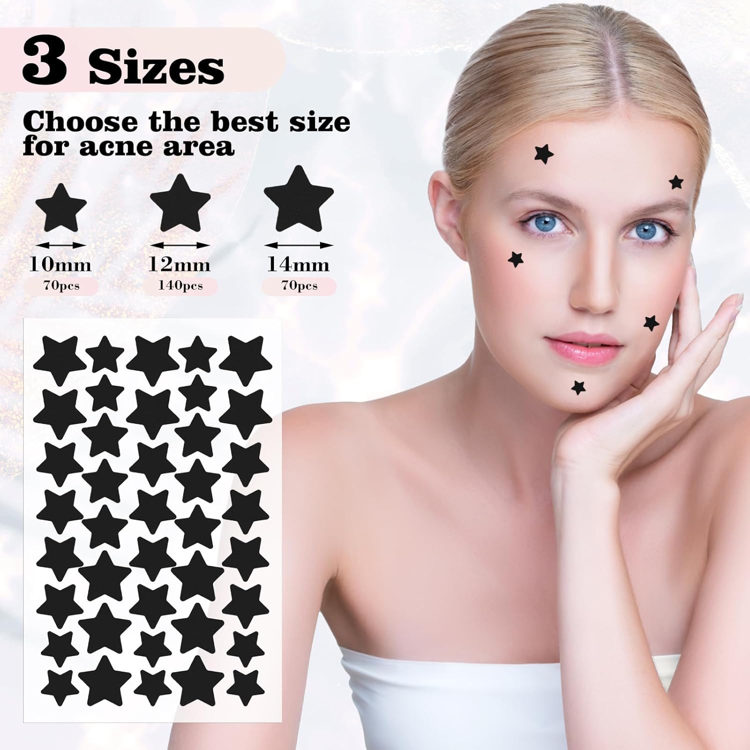Add a little style while covering up spots. These star-shaped patches come in 3 sizes, making it easy to choose the right fit for any area. They blend with your look, are gentle on skin, and let you go through the day with confidence. Perfect for day or night use.